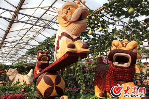 除了精美的果蔬,神奇的科技,令人流連忘返的意境,還有用蔬菜、果實(shí)、種子、干果等組合而成的310多個蔬菜藝術(shù)景觀,讓游客不僅感嘆科技的神奇,“只有想不到的,沒有做不到的!