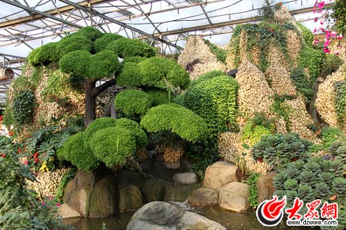 展館內(nèi)最大的景觀“錦繡江山”全部由生姜打造。(馬鑫 攝)