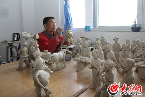 在濰坊科技學(xué)院,本地的一位民間藝人被請(qǐng)到學(xué)校,教授陶藝創(chuàng)作技巧(馬鑫 攝)