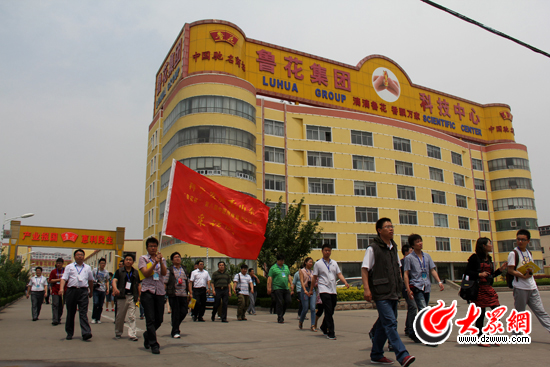 科學(xué)發(fā)展新山東——“魯花杯”第八屆中國網(wǎng)絡(luò)媒體山東行采訪團在魯花集團采訪時合影留念。(馬鑫 攝)