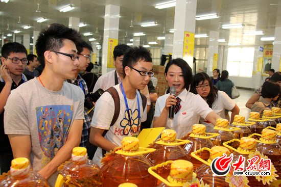 科學(xué)發(fā)展新山東——“魯花杯”第八屆中國網(wǎng)絡(luò)媒體山東行采訪團走進魯花集團參觀采訪。 (馬鑫 攝)