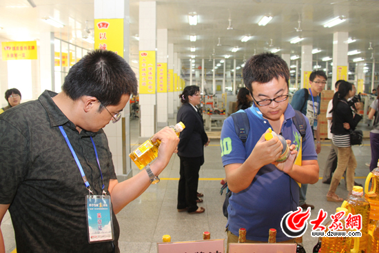 魯花5S壓榨花生油成為記者們關(guān)注的焦點。(馬鑫 攝)