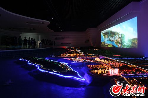 17日上午,采訪團(tuán)一行來到牟平規(guī)劃展示中心。據(jù)工作人員介紹,該展示中心集藍(lán)色經(jīng)濟(jì)發(fā)展規(guī)劃、演示、體驗(yàn)、互動(dòng)于一體,采用多媒體沙盤、圖板、顯示屏、模型和3D影院等高科技手段,集中展示煙臺(tái)東部濱海生態(tài)城暨牟平藍(lán)色經(jīng)濟(jì)區(qū)規(guī)劃成果,立體描繪藍(lán)色牟平未來宏圖。