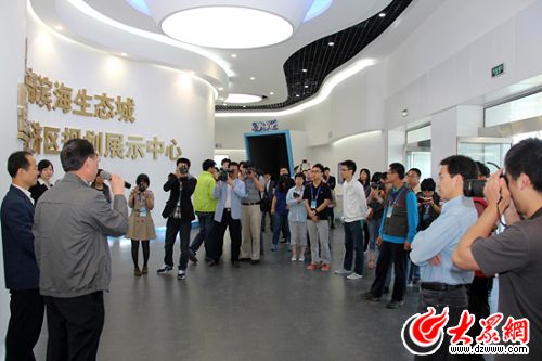 采訪團(tuán)在牟平參觀煙臺(tái)東部濱海生態(tài)城展示中心 記者 馬鑫 攝
