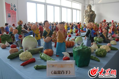 動(dòng)漫學(xué)院的老師用泥捏出的《蔬菜百子》(馬鑫 攝)
