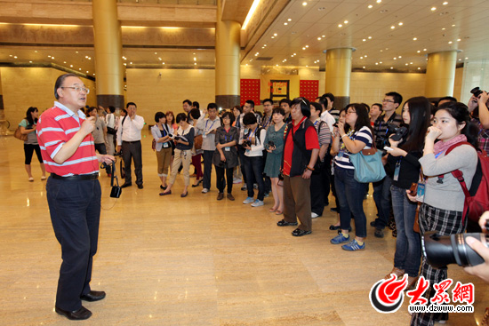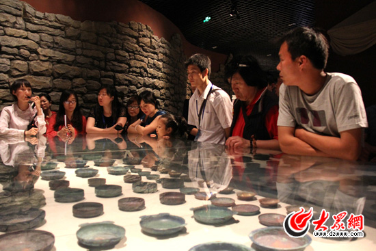 13日下午,“科學發(fā)展新山東——魯花杯第八屆網絡媒體山東行”采訪團一行來到山東省博物館。(盛堃 攝影)