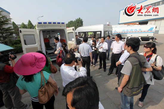 中通客車控股股份有限公司相關(guān)負(fù)責(zé)人向采訪團(tuán)介紹了其公司生產(chǎn)的多功能急救車。(盛堃 攝影)
