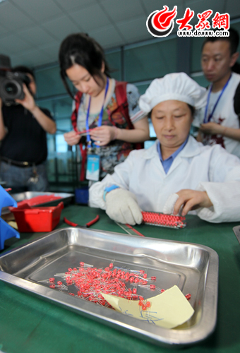 采訪團記者在生產(chǎn)車間內(nèi)參觀采訪。(盛堃 攝影)