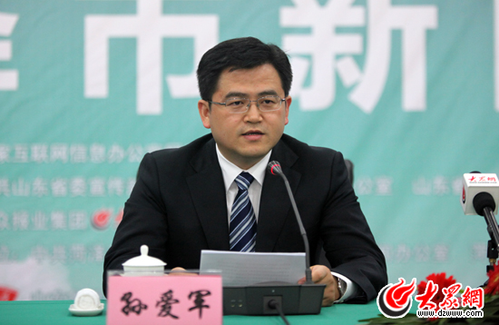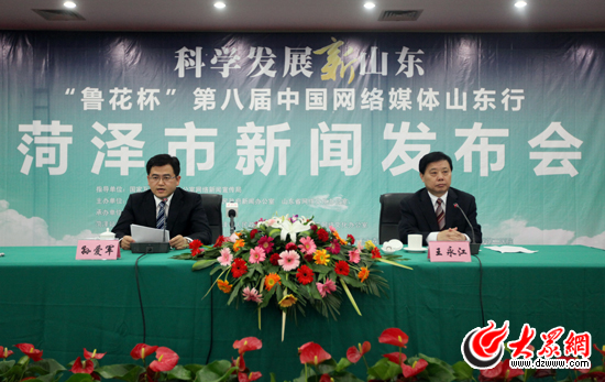 菏澤市委副書記、市長(zhǎng)孫愛軍出席科學(xué)發(fā)展新山東——“魯花杯”第八屆中國(guó)網(wǎng)絡(luò)媒體山東行菏澤市新聞發(fā)布會(huì)。(盛堃 攝影)