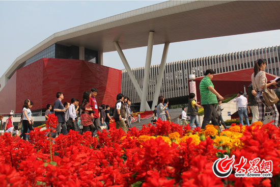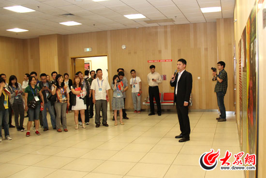 16日下午,科學(xué)發(fā)展新山東——“魯花杯”第八屆中國網(wǎng)絡(luò)媒體山東行采訪團(tuán)前往煙臺(tái)文化藝術(shù)中心采訪。(馬鑫 攝)