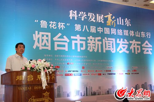 煙臺市副市長于松柏出席煙臺市新聞發(fā)布會并致辭。(馬鑫 攝)