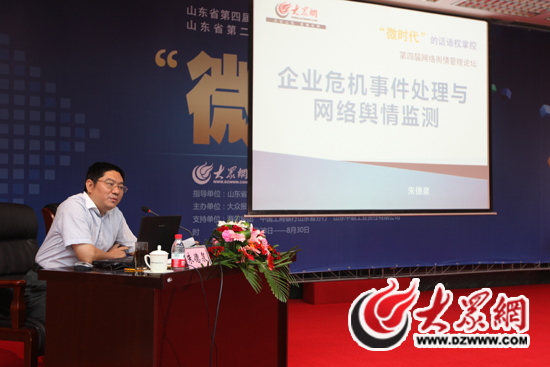 大眾網(wǎng)總編輯朱德泉做題為《企業(yè)危機(jī)事件處理與網(wǎng)絡(luò)輿情監(jiān)測(cè)》的講座