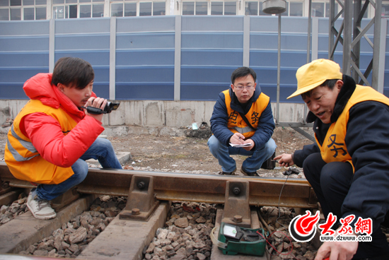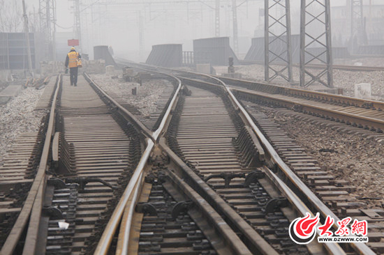 大眾網(wǎng)記者在鐵道上采訪李建華。