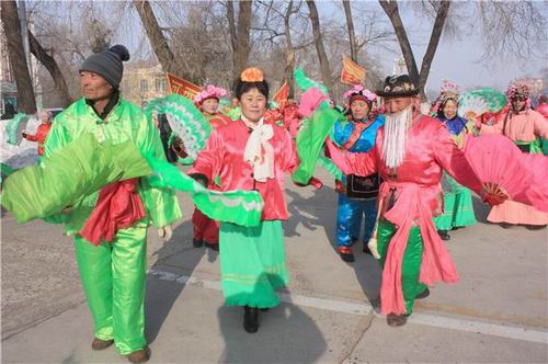 從上午10點(diǎn)開始,村民的秧歌隊(duì)、鑼鼓隊(duì)就一直表演到下午兩點(diǎn),從文化廣場到全村的大街小巷,他們說一直表演到正月十五,要把鑼鼓敲到縣城、秧歌扭到縣城,讓在外工作的人們看到縣城的變化,感受到他們的心勁和豪情。