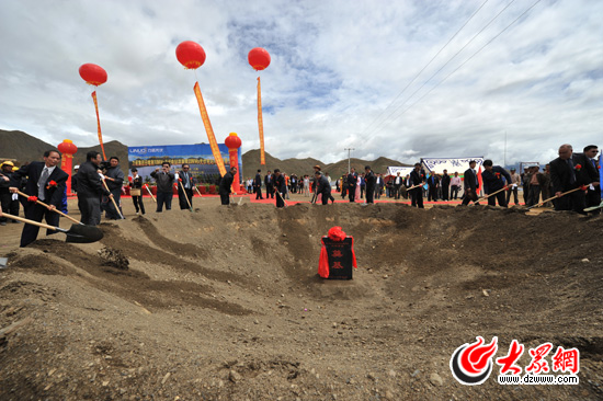2011年9月28日,作為山東省第四、五、六批援藏干部援藏工作的結(jié)晶,日喀則地區(qū)的標(biāo)志性建筑,市行政中心辦公大樓正式落成使用。行政中心前,是山東援建的一條集城市交通、綠化、休閑功能于一體的城市交通動(dòng)脈——規(guī)劃六號(hào)路。道路全長(zhǎng)約700米,路基部分已基本完成,施工方力爭(zhēng)在明年上半年實(shí)現(xiàn)主線通車(chē)。筆者在這里看到,工人們?cè)趦蓚?cè)共整理出數(shù)萬(wàn)平方米的土地進(jìn)行高標(biāo)準(zhǔn)綠化!懊髂,一條景觀大道即將呈現(xiàn)在市民面前!痹馗刹俊⑷湛t市委書(shū)記王希靜說(shuō)。
