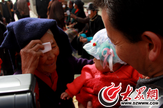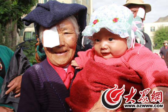 因?yàn)榛颊叩哪昙o(jì)多在50歲以上,所以不少藏族老阿爸、老阿媽今天都是由子女陪同來復(fù)查。其中,70歲老阿媽巴桑卓瑪除了兒子兒媳的陪伴外,10個月大的小孫女今天也被特意帶過來見證老人的復(fù)明。