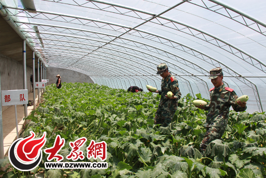駐昂仁縣的武警戰(zhàn)士被邀請(qǐng)采摘首次結(jié)出的西葫蘆。
