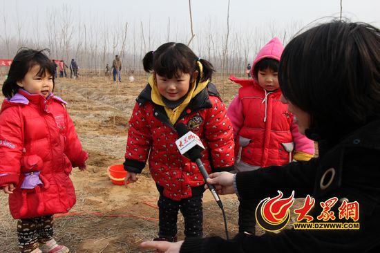 參加植樹活動(dòng)的日照小網(wǎng)友接受記者采訪。