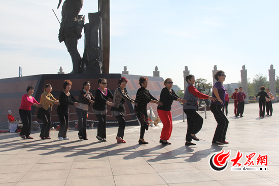 一群市民在東夷文化標志園里跳廣場舞 見習記者 馬俊驥 攝