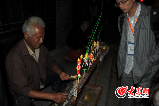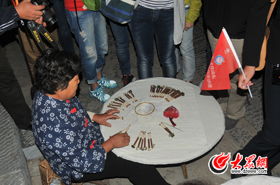 青州北門大街里,民間藝人在演示非物質(zhì)文化遺產(chǎn)“青州府花邊大套”制作技藝 見習(xí)記者 馬俊驥 攝