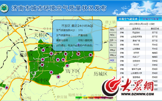 濟南目前仍有4個區(qū)域顯示為“嚴重污染”