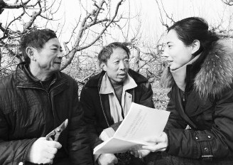 2012年12月12日,棗莊市山亭團(tuán)區(qū)委派駐店子鎮(zhèn)苑莊村“第一書記”高曉娟(右)在果園向農(nóng)民宣傳十八大精神。10多年了,... 全文>>