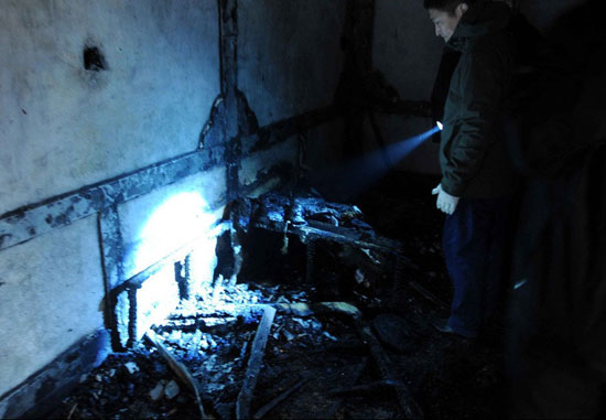 1月4日,工作人員在發(fā)生事故的房間內(nèi)勘察,失火時,遇難的孩子因為無法行走而殞命。據(jù)了解,袁厲害多年來一直在蘭考縣人民醫(yī)院門口擺攤賣東西,以收養(yǎng)棄嬰和孤兒出名,其安置孤兒和棄嬰的地方緊鄰蘭考縣衛(wèi)生局和蘭考縣人民醫(yī)院。