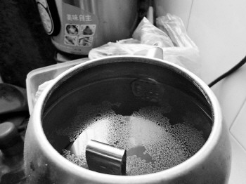 同住蓋佳花園的周女士也有同樣的煩惱,她告訴記者,她搬到這個小區(qū)3年了,現(xiàn)在洗菜、做飯、飲用的水都是純凈水,只有洗衣服、洗澡才敢直接用水管里的水。記者在周女士家里看到,剛接出來的水看上去很清澈,沒有任何雜質(zhì)。但加熱燒開后,水里就開始析出一些乳白色的小塊雜質(zhì),這些雜質(zhì)多半沉底,也有一部分漂在水面。