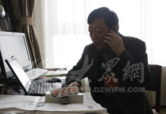 3月3日,在赴北京參加全國兩會(huì)的火車上,陳德展仍在分析王和新提出的“百姓提案”(大眾網(wǎng)特派記者王磊 攝)