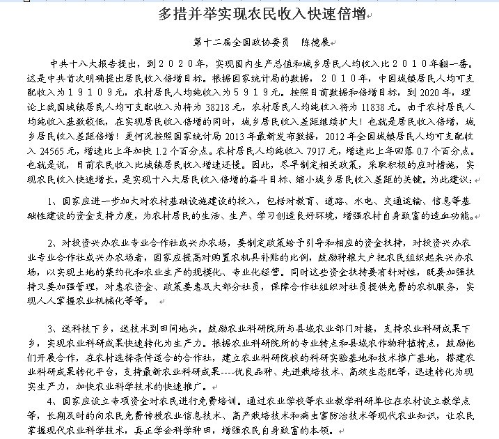 《多措并舉實(shí)現(xiàn)農(nóng)民收入快速倍增》提案部分建議。