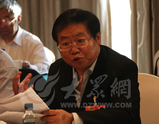 全國政協(xié)委員施芝鴻在參加政協(xié)小組討論時(shí)發(fā)言。(大眾網(wǎng)特派記者王磊 攝)