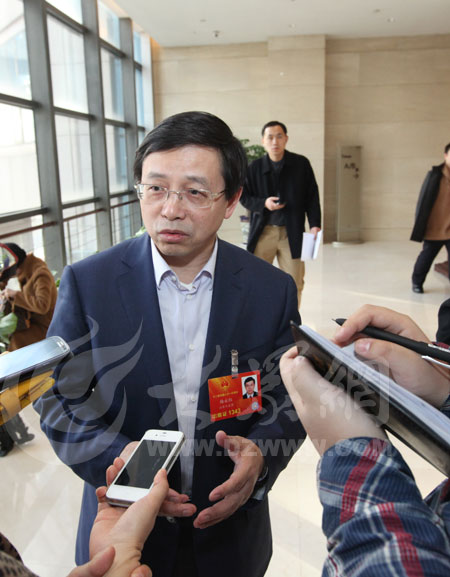 十二屆全國(guó)人大代表、濟(jì)寧市委副書(shū)記、市長(zhǎng)梅永紅談大部制改革。(特派記者盛堃 攝)