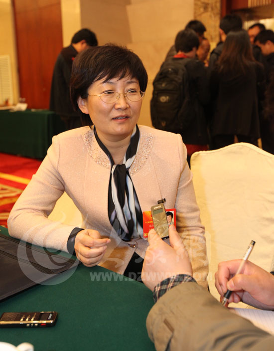 全國(guó)人大代表、臨沂市婦幼保健院院長(zhǎng)張艷麗接受大眾網(wǎng)記者采訪。(特派記者盛堃 攝)