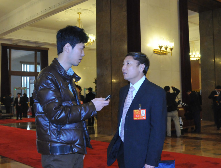 3月15日(星期五)上午9時(shí),十二屆全國(guó)人大一次會(huì)議在人民大會(huì)堂舉行第五次全體會(huì)議,決定國(guó)務(wù)院總理的人選;決定中華人民共和國(guó)中央軍事委員會(huì)副主席、委員的人選;選舉最高人民法院院長(zhǎng);選舉最高人民檢察院檢察長(zhǎng)。圖為全國(guó)人大代表蔡昉接受新華網(wǎng)、中國(guó)政府網(wǎng)記者采訪。宋君毅攝