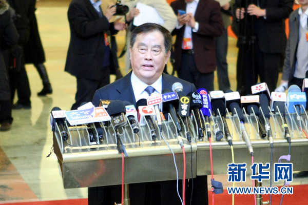 3月10日,列席十二屆人大一次會議的鐵道部長盛光祖在人民大會堂北門入口接受媒體記者采訪。新華網(wǎng)記者 楊理光攝