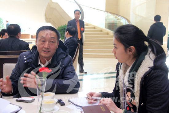 十二屆全國人大代表、十一屆全國人大常委會委員許振超接受大眾網(wǎng)記者采訪。(特派記者 尹海洋 攝)