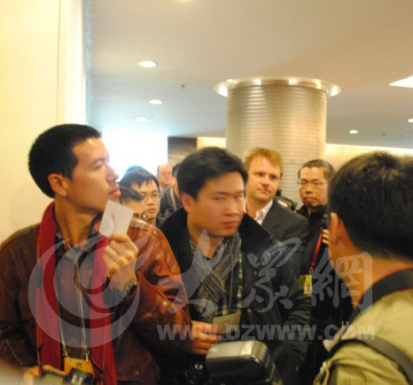 由于來該會議室采訪的記者過多,工作人員不得不采取排號的方式,憑號入場。(大眾網(wǎng)特派記者王磊 攝)