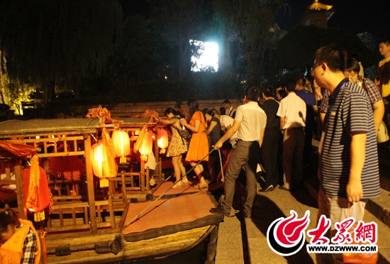 今天晚上,西線采訪團來到臺兒莊古城,準備登船夜游。 記者 郭豪攝