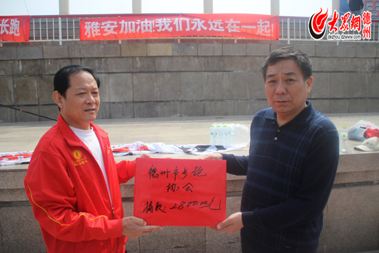 據(jù)悉,此次名為“雅安加油,我們永遠(yuǎn)在一起”的簽字募捐行動(dòng),由陵縣小窖仙贊助、大眾網(wǎng)德州站攜德州市長跑協(xié)會(huì)發(fā)起的五一長跑活動(dòng),簽字募捐后百余名長跑愛好者將圍繞中心廣場連續(xù)跑25圈,全程近1萬米,另外,記者還了解到,在本次活動(dòng)中,年齡最大的一位長跑愛好者已有77歲高齡,最小的只有20歲,其中年近八旬的華大爺是一名長跑愛好者,至今還保持每天跑5000米的習(xí)慣,并且這一堅(jiān)持就是50年。