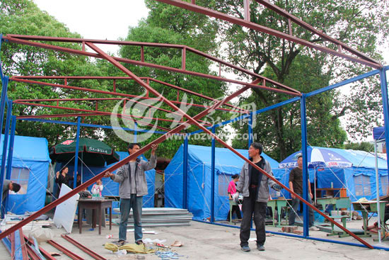 “我參加過汶川地震的救援,我知道震區(qū)最大得困難就是住宿和吃飯,我敢保證,我?guī)?lái)的板房是抗震效果最好的!”今天下午4點(diǎn)多,大眾網(wǎng)特派記者在蘆陽(yáng)鎮(zhèn)第二小學(xué)找到劉志剛時(shí),6間板房已經(jīng)建好,他擺著胸脯向大眾網(wǎng)記者保證。