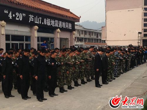 大眾網(wǎng)蘆山4月27日訊(特派記者 盛堃 尹海洋 李兆輝)今天距離雅安“4·20”地震已經(jīng)7天了,今早8:00開始,大眾網(wǎng)特派記者在蘆山縣政府廣場現(xiàn)場直播哀悼活動。今天上午8點02分,四川全省深切哀悼在“4·20”蘆山7.0級地震中遇難的同胞。四川省委省政府主要領(lǐng)導、參與救援戰(zhàn)士和自發(fā)趕來的群眾在蘆山縣人民政府廣場參與哀悼活動。