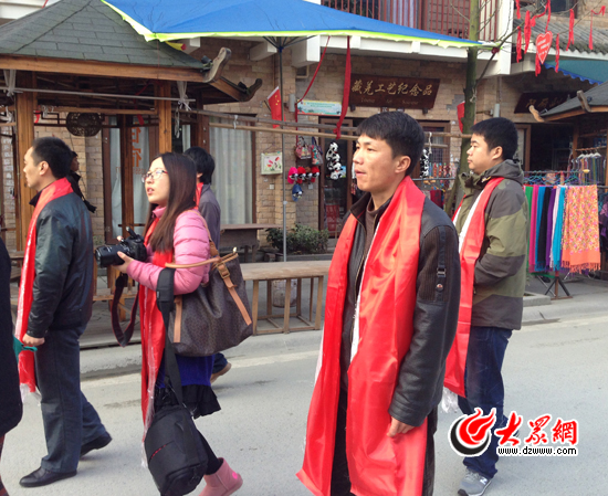 花千芳(右二)與全國的知名博主們在四川當?shù)夭娠L。