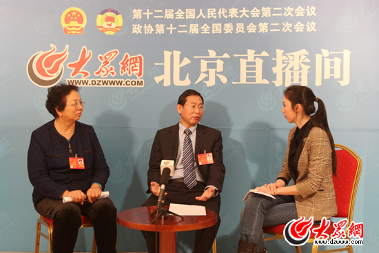 全國人大代表、聊城職業(yè)技術學院副院長孫菁,全國人大代表、山東中醫(yī)藥大學附屬眼科醫(yī)院(施爾明眼科醫(yī)院)院長畢宏生做客大眾網(wǎng)北京直播間。特派記者 馬俊驥 攝