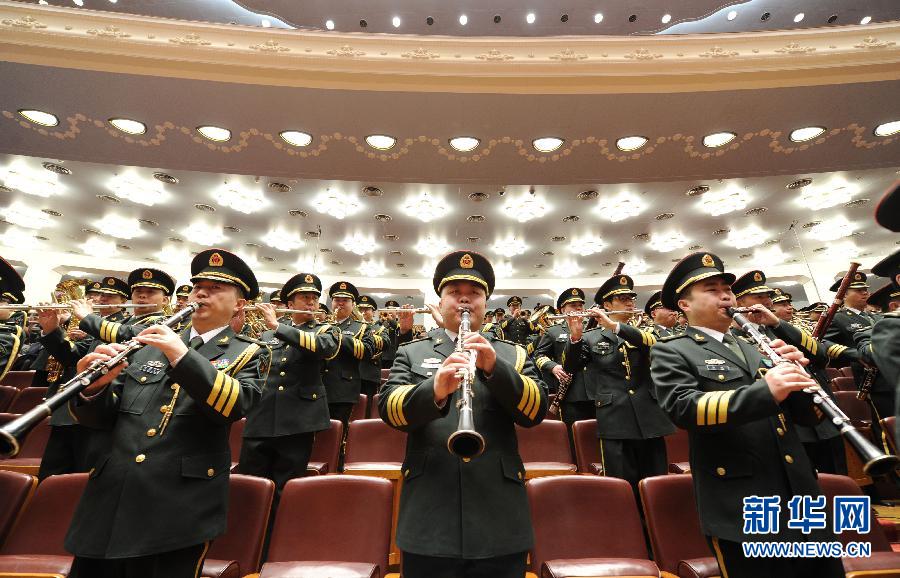 3月5日,第十二屆全國人民代表大會第二次會議在北京人民大會堂開幕。這是軍樂團奏國歌。 新華社記者王曄攝