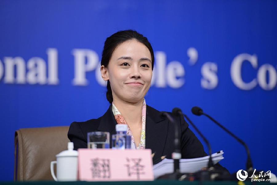 2014年3月5日下午3時,十二屆全國人大二次會議新聞中心在梅地亞中心多功能廳舉行記者會,邀請國家發(fā)展和改革委員會主任徐紹史就“經(jīng)濟社會發(fā)展與宏觀調(diào)控”的相關問題回答中外記者的提問。圖為記者會翻譯。 人民網(wǎng)記者 張啟川攝