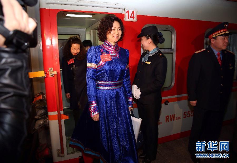 3月2日7時(shí)15分,內(nèi)蒙古代表團(tuán)乘坐火車抵達(dá)北京西站,成為第一批到達(dá)北京的京外代表。當(dāng)日7時(shí)15分,出席十二屆全國(guó)人大二次會(huì)議的內(nèi)蒙古代表團(tuán)乘坐火車抵達(dá)北京西站,成為第一批到達(dá)北京的京外代表。