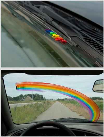 3.將彩色橡皮泥藏在雨刮器旁,讓對方看看彩虹的效果吧!實施很容易!