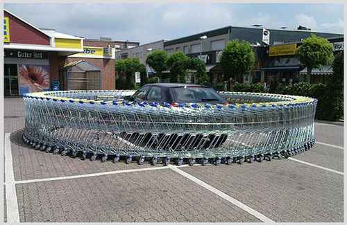 4.超市購物車包圍對方的汽車!難是不難,但要搜集得到購物車。