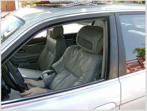 5.自己藏在車座里面,看看對方的反應(yīng)!這個絕對嚇人,但一個人難以完成。