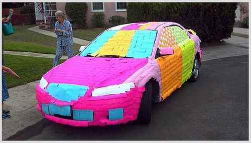 13.拿彩色便簽紙貼滿對方的車!不難實施,就是需要點耐心!